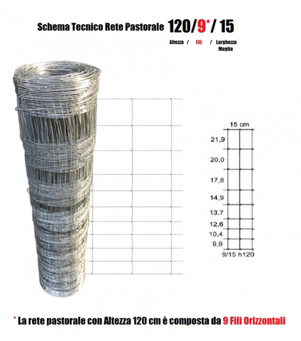 CODICE ARTICOLO: ITALFROM_4048 CONSEGNA 4/5 Giorni - MAGLIA: 9/15 - DIAMETRO FILO:mm2,5/3,0 - ALTEZZA RETE: 120 cm- rete metallica realizzata annodando il filo verticale su quello orizzontale. I fili verticali ed orizzontali della rete sono in acciaio a forte zincatura. L'impiego è rivolto alla recinzione di grandi aree ad uso agricolo e zootecnico. E' considerata una tra le reti più econimiche di tutta la gamma.