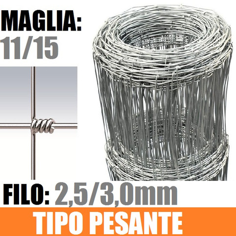 CODICE ARTICOLO: ITALFROM_4049 CONSEGNA 4/5 Giorni - MAGLIA: 11/15 -DIAMETRO FILO:mm2,5/3,0 - ALTEZZA RETE: 140 cm- rete metallica realizzata annodando il filo verticale su quello orizzontale. I fili verticali ed orizzontali della rete sono in acciaio a forte zincatura. L'impiego è rivolto alla recinzione di grandi aree ad uso agricolo e zootecnico. E' considerata una tra le reti più econimiche di tutta la gamma.