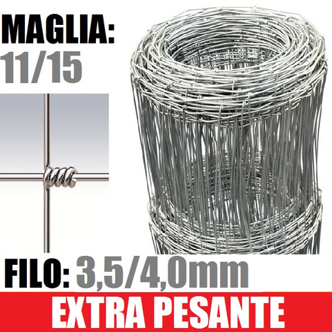 CODICE ARTICOLO: ITALFROM_4052 MAGLIA: 11/15 -DIAMETRO FILO:mm3,5/4,0 - ALTEZZA RETE: 140 cm- rete metallica realizzata annodando il filo verticale su quello orizzontale. I fili verticali ed orizzontali della rete sono in acciaio a forte zincatura. L'impiego è rivolto alla recinzione di grandi aree ad uso agricolo e zootecnico. E' considerata una tra le reti più econimiche di tutta la gamma.