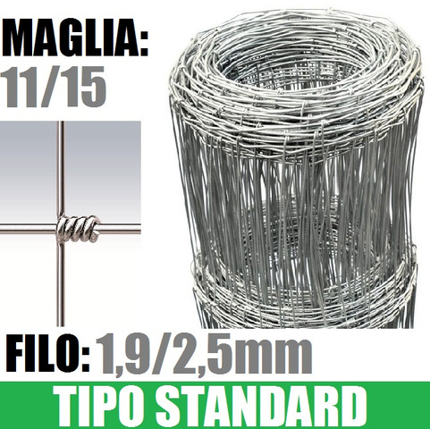 CODICE ARTICOLO: ITALFROM_5815 CONSEGNA 24/48 ORE - 4 ROTOLI DA 50 MT - MAGLIA: 11/15 -DIAMETRO FILO:mm1,9/2,5 - ALTEZZA RETE: 140 cm- rete metallica realizzata annodando il filo verticale su quello orizzontale. I fili verticali ed orizzontali della rete sono in acciaio a forte zincatura. L'impiego è rivolto alla recinzione di grandi aree ad uso agricolo e zootecnico. E' considerata una tra le reti più econimiche di tutta la gamma.