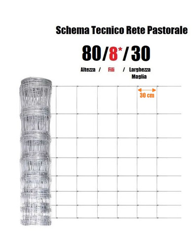 CODICE ARTICOLO: ITALFROM_8546 CONSEGNA 4/5 Giorni - MAGLIA: 8/30 -DIAMETRO FILO:mm2,5/3,2 - ALTEZZA RETE: 80 cm- rete metallica realizzata annodando il filo verticale su quello orizzontale. I fili verticali ed orizzontali della rete sono in acciaio a forte zincatura. L'impiego è rivolto alla recinzione di grandi aree ad uso agricolo e zootecnico. E' considerata una tra le reti più econimiche di tutta la gamma.