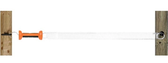 CODICE ARTICOLO: ITALFROM_11448 Set Cancello per Recinto 5 m con Molla Bianca GALLAGHER per Recinzioni ElettricheSet completo per realizzare un cancello a molla adattabile a passaggi larghi fino a 5 metri. Un’eccellente visibilità è assicurata dai colori brillanti della molla bianca e della maniglia arancione. Si ritrae fino alla posizione di partenza. Sconsigliato con i cavalli.Caratteristiche tecnicheAltezza (mm): 65Largezza (mm): 180Lunghezza (mm): 255Larghezza Max Porta: 5 m Perchè scegliere i materiali per recinzioni elettriche Gallagher?Gallagher è il marchio di qualità per le recinzioni elettrificate da più di 80 anni. Azienda leader nel campo delle recinzioni elettriche adatte sia per la protezione degli animali che per il loro respingimento. I materiali Gallagher sono di elevata qualità, molto resistenti e hanno una notevole durata nel tempo.I prodotti Gallagher sono venduti e apprezzati in tutto il mondo per innovazione, potenza e qualità in grado di offrire sicurezza e protezione a uomini e animali. Una recinzione elettrificata Gallagher è quanto di meglio si possa installare in termini di affidabilità, durevolezza e sicurezza. Rappresenta il top di mercato. La recinzione elettrica è una barriera fisica e psicologica molto efficace: gli animali, dopo essere entrati a contatto con la recinzione, la rispettano e la evitano. La recinzione elettrica può essere installata per il controllo di animali domestici ma anche per proteggere le colture e gli animali domestici da predatori e selvatici dannosi. Consente di realizzare facilmente recinzioni temporanee per migliorare lo sfruttamento dei pascoli. La recinzione elettrica si installa facilmente e, in genere, non richiede particolari attrezzi o capacità, ha un basso impatto ambientale e può essere installata senza permessi.GARANZIA: 2 ANNI
