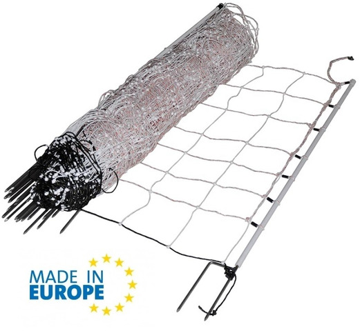 CODICE ARTICOLO: ITALFROM_11318 EuroNetz TurboLine Rete per Ovini Bianca 90/2-14/B-50 m GALLAGHER per Recinzioni ElettricheRete elettrificata, ad alta conducibilità, indicata per recinzioni temporanee per pecore o piccole capre. I moduli, lunghi 50 metri e completi di pali, sono facilmente collegabili uno all’altro.Legenda simboli90 Altezza della rete (al di sopra del terreno)2 Punta doppia (2)14 Numero di pali50m Lunghezza della reteB Colore dei pali (bianchi)Il seguente prodotto appartiene alla famiglia dei conduttori. Quest'ultimi hanno un ottimo rapporto qualità prezzo e sono adatti per soddisfare ogni esigenza di recinzione elettrica, sia mobile che perma...