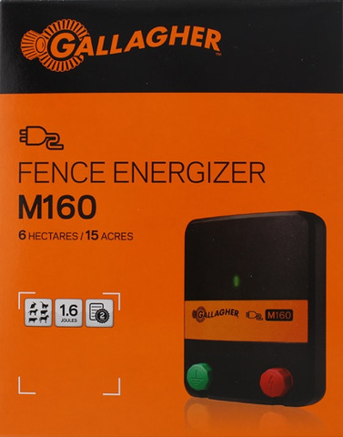 CODICE ARTICOLO: ITALFROM_10992 Elettrificatore a Rete GALLAGHER M160 a Corrente 230V/1,6 JCompatto elettrificatore a 230V. Potente, facile da installare e da utilizzare. Idicato per tutti gli animali domestici e da allevamento. Soluzione perfetta per le recinzioni elettrificate nel settore dell'allevamento e della zootecnia, con un eccellente rapporto qualità-prezzo.Caratteristiche   Tensione di massima uscita: 7600 V Su tensione di carico 500 Ohm: 4600 V Tensione di carico 100 Ohm: 1600 V  Energia di carica: 1,6 J Energia massima dell'impulso: 0,6 J Filo singolo - Condizioni ideali : 39 km  Distanza multifilare - Condizioni ideali : 9 km Distanza multifilare - Vegetazione leggera : 3...