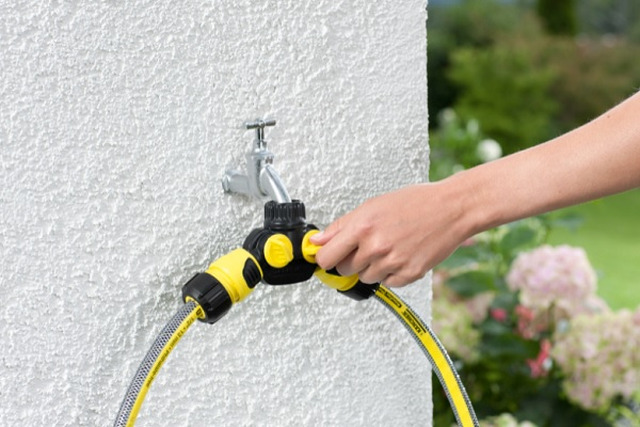 CODICE ARTICOLO: ITALFROM_10398 Presa DUPLEX KARCHER per Rubinetti a 2 ViePresa rubinetto DUPLEX KARCHER a due uscite indipendenti e regolabili, con filetto da 1' e riduzione a 3/4' da inserire in un sistema di irrigazione ad elevate pressioni al fine di eliminare completamente sprechi d'acqua ed ottimizzare il controllo totale sul dove e quanto irrigare. Completa di rubinetti per la regolazione del flusso. Ideale per piante,arbusti,siepi e fiori,orti o aiuole. Particolarmente indicato per impianti di irrigazione e giardinaggio e settore termoidraulico, di grande velocità e semplicità di montaggio. Completamente inossidabile in quanto privo di parti metalliche, resiste agli urti, alle intemperie, ai raggi solari e ad una pressione d'acqua elevatissima; fino a 40 bar, molto di più del normale utilizzo per il giardinaggio domestico.Caratteristiche e vantaggi Due uscite acqua indipendenti Con prefiltro integrato Raccordo Rapido Un rubinetto alimenta due uscite acqua indipendenti Durevolissima Montabile su rubinetti con filetto 3/4' o 1/2'Aree di applicazione Per irrigare giardini e orti di dimensioni ridotte Per irrigare giardini e orti di dimensioni grandi Per la pulizzia di attrezzi da giardino e mobili da esterno