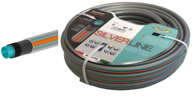 CODICE ARTICOLO: ITALFROM_10310 Tubo Retinato 'SILVERLINE' Diametro 5/8' Rotolo 25 MetriTubo retinato modello 'SILVERLINE' con 4 strati,antialga. Con diametro 5/8' , rotolo da 25 metri lineari. Ideale per irrigare giardini,orti e terrazzi. Ottimo da inserire in un impianto di irrigazione di superficie, sistema semplice ed economico, per evitare al massimo sprechi d'acqua ed arrivare a punti ostici che un impianto a goccia non riuscirebbe a raggiungere. Dettagli Antialga, a 4 strati Pressione di esercizio 10 bar Pressione di scoppio 30 bar Resistente a temperatura da -10 °C a +60 °C Rotolo 25 metri Diametro 5/8'Caratteristiche tecniche