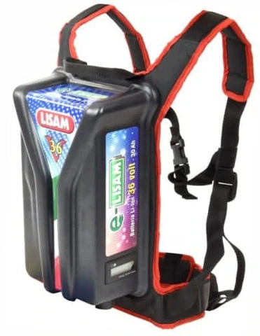 Batteria a spalla 36 volt – 30 Ah Alimenta gli abbacchiatori senza intralciare il lavoro di raccolta. Grande autonomia e garanzia di poter raccogliere le olive in modo agevole e pratico. Le nuove potenti batterie agli ioni di litio vengono fornite con un comodo zainetto che le rende comode da indossare e distribuisce il peso in maniera uniforme, così da non affaticare lutilizzatore. Le alte prestazioni delle batterie Lisam sono garantite dalla grande potenza di questa batteria che permette ai pettini a 36 volt di lavorare alla massima potenza. La pratica valigetta contiene al suo interno: • cavo collegamento pettine • batteria • caricabatteria • zainetto
