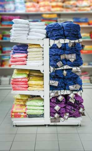 Scaffale da negozio a gondola L 133, H 166 , Prof.50+50 CM, base + 3 ripiani