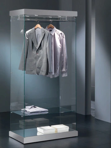 Vetrina 4 Faretti Led 4000°K - Tubo Appendiabiti -93x53x200h - Cristalli Temperati Made in Italy