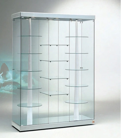 VETRINA 6 FARETTI LED 4000°K - RIPIANI GIREVOLI CON MOTORE -143x53x200h - CRISTALLI TEMPERATI MADE