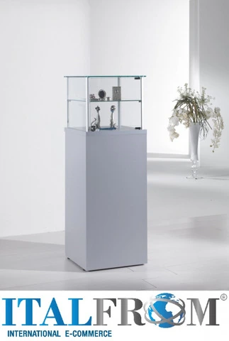 Vetrina in Cristallo Temperato con Base in Legno, dimensioni (45X45X h135) Alldes Made in Italy