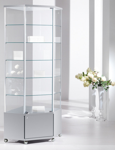 VETRINA 4 FARETTI LED 4000°K - RIPIANI GIREVOLI CON MOTORE - ø74x200h - CRISTALLI TEMPERATI MADE IN Acquista Online