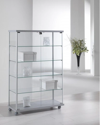 Vetrina in Cristallo Temperato con 2 Piantane in Legno dimensioni (160X80X h100) Serie Alldes Made