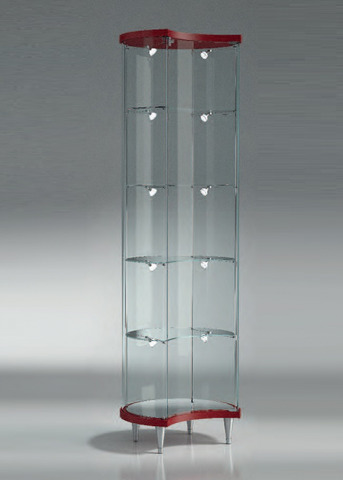 Vetrina Mezza Luna Laccata in Cristallo Temperato 4 Ripiani Altezza 190 cm Diametro 56 cm