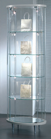 Vetrina Ovale Piccola in Cristallo Temperato 4 Ripiani (64x44X190)