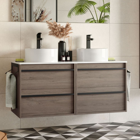 Mobile bagno sospeso rovere eternity doppio lavabo 4 cassetti 120x45x54h