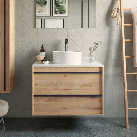 Mobile bagno sospeso rovere ostippo lavabo appoggio 2 cassetti 100x45x54h Acquista Online