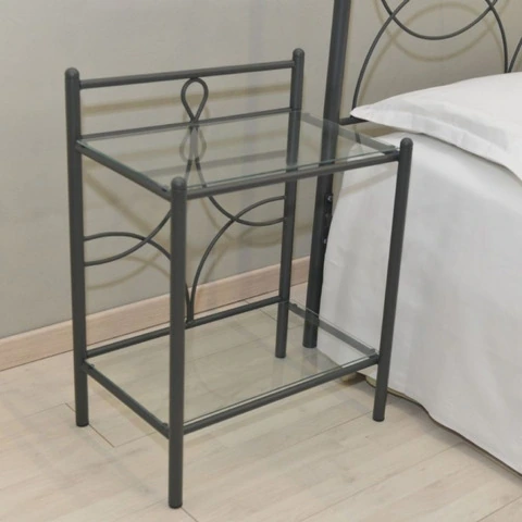 CODICE ARTICOLO: ITALFROM_10001944 Comodino Silene in ferro battuto antracite Comodino in ferro battuto antracite Silene Elegante comodino in ferro battuto con due ripiani in cristallo. Caratteristiche: Ferro battuto. Colore antracite. Misure L 52 x P 35x72 H cm. Altezza da terra primo ripiano 15,5 cm. Altezza da terra primo ripiano 59,7 cm. Acquisto minimo 2 pz. Made in Italy TEMPI DI CONSEGNA: 30/40 GIORNI