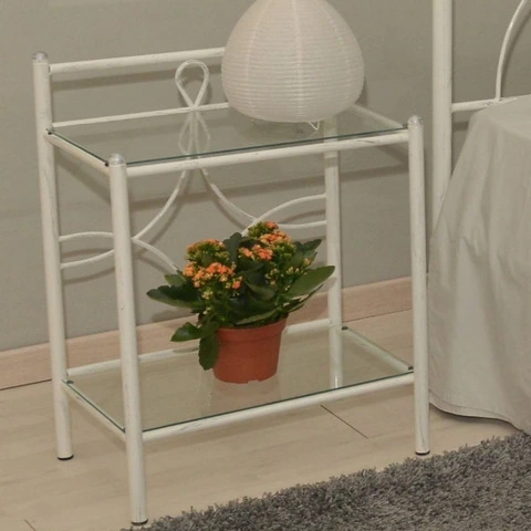 Comodino Silene in ferro battuto bianco satinato