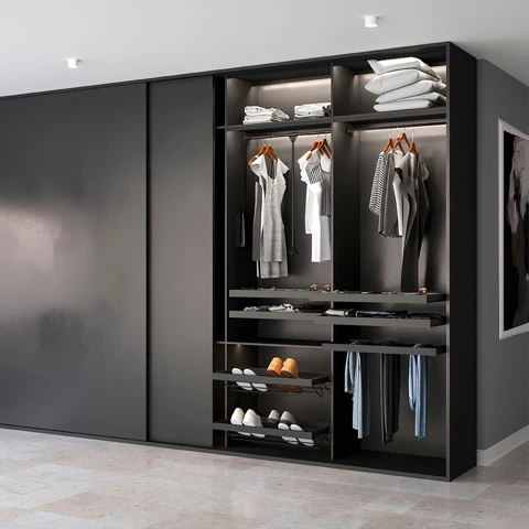 L'appendiabiti per armadio Hang permette di avere accesso alla zone più alte dell'armadio senza sforzo. La barra è regolabile in larghezza per essere adattata al vano utile dell'armadio, oltre ad avere un movimento dolce con ritorno ammortizzato ha una capacità di carico massimo di 12 kg. In caso di installazione sull'armadio con porte a battente si raccomanda il montaggio insieme agli spessori laterali Hang 7085025/7085013/7085017/7085049.
