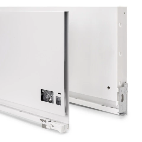 cassetto alto 242 mm, progettati per uno spessore del pannello di 16 mm. Comprende: due sponde laterali, un set di guide a chiusura morbida, un set di coperchi e i fissaggi per il frontale del cassetto. Le