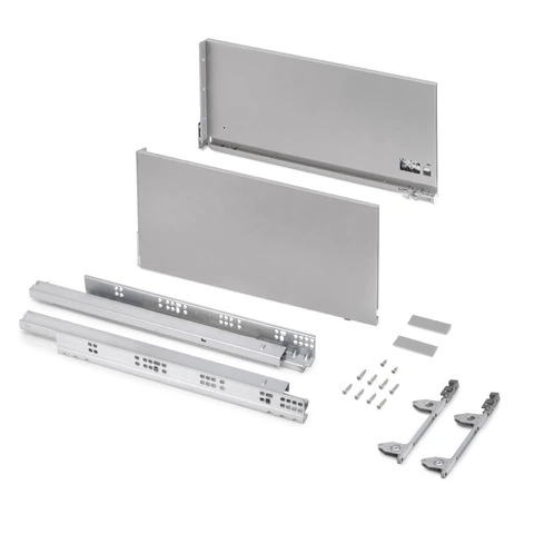 Ogni kit è composto da tutti gli elementi necessari per il montaggio di un cassetto alto 242 mm,  progettati per uno spessore del pannello di 16 mm. Comprende: due sponde laterali, un set di guide a chiusura morbida, un set di coperchi e i fissaggi per il frontale del cassetto. Le guide sono ad estrazione totale sincronizzata con chiusura ammortizzata e consentono un carico massimo di 60kg.