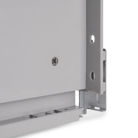 Le sponde laterale in metallo sono realizzate in acciaio con finitura verniciato grigio antracite, ha una regolazione frontale 3D: verticale tramite eccentrici di ±2 mm, orizzontale ±1 mm, inclinazione -1,5/+4 mm. Le guide sono di estrazione totale con chiusura ammortizzata e hanno una capacità di carico massima di 40 Kg per il cassetto.