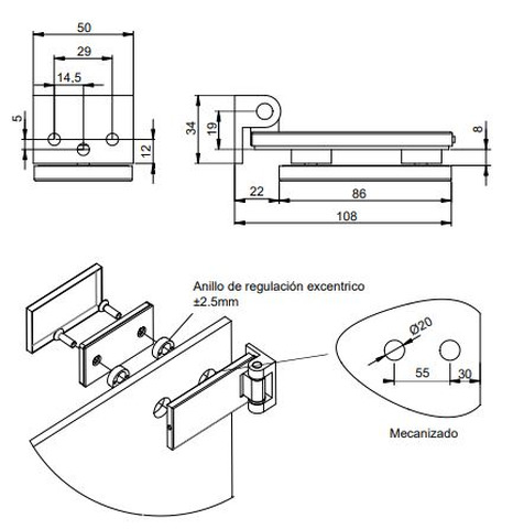 Cerniera orizzontale per porta in vetro con finiture in acciaio inox. Ideale per porte in vetro, vetrine o porte della doccia. La lama della cerniera è di 40 mm, può essere installata su porte in vetro con uno spessore da 8 a 12 mm e ha un raggio di rotazione di 180º. È dotata di anelli eccentrici che consentono una regolazione di ±2,5 mm. Due cerniere supportano 60 kg e 3 cerniere 90 kg. Realizzata in alluminio. Include una cerniera e tutta la ferramenta di montaggio.