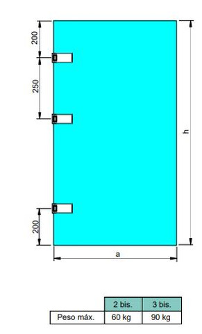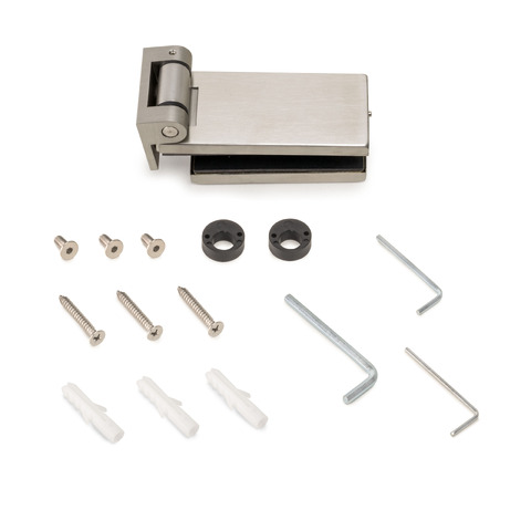 Cerniera orizzontale per porta in vetro con finiture in acciaio inox. Ideale per porte in vetro, vetrine o porte della doccia. La lama della cerniera è di 34 mm, può essere installata su porte in vetro con uno spessore da 8 a 12 mm e ha un raggio di rotazione di 180º. È dotata di anelli eccentrici che consentono una regolazione di ±2,5 mm. Due cerniere supportano 60 kg e 3 cerniere 90 kg. Realizzata in alluminio. Include una cerniera e tutta la ferramenta di montaggio.