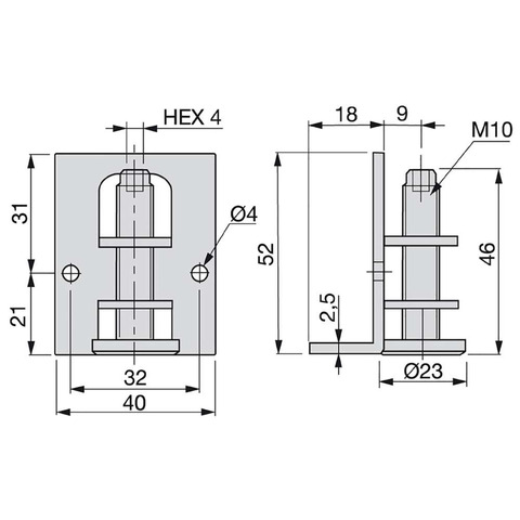 Il piedino regolabile M10 per mobili è progettato per regolare e livellare in modo semplice ogni tipo di mobile. La regolazione del piedino si ottiene dall'interno del mobile con una chiave esagonale 4. Dispone di vite M10 con base in plastica nera D23mm e una squadra che si avvita al mobile.