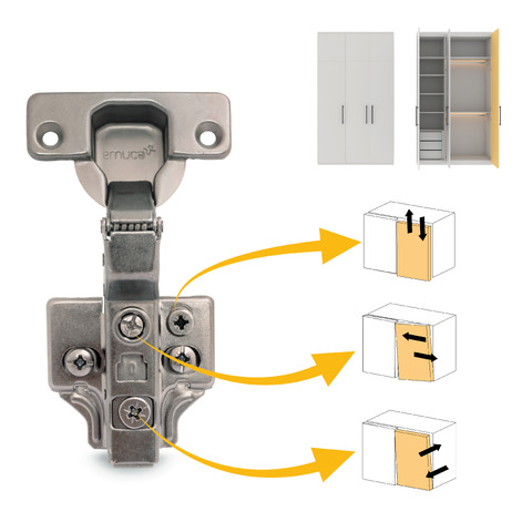 Cerniere per ante progettate per l'utilizzo nei mobili della casa e dell'ufficio con alta qualità e al miglior prezzo. Con pistone ammortizzatore che regola la chiusura soft dell'anta. Sono disponibili in collo dritto con apertura dell'anta a 105º. Per la sua istallazione è necessario un foro diametro 35 mm per lo scodellino. E il fissaggio al pannello avviene mediante le viti incluse. Allo stesso tempo è molto facile l'istallazione grazie al sistema automatico di montaggio a clip della cerniera alla basetta. Inoltre entrambi dispongono di vite eccentrica per una regolazione rapida e comoda. Il fissaggio della basetta avviene con vite Euro che necessita di un foro diamentro 5 x 12 mm nella spalla de...