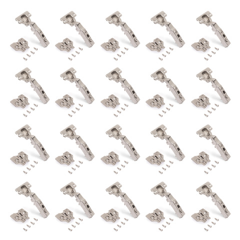 Emuca Lotto di 20 cerniere collo dritto X91 con chiusura soft a vite, altezza 0, Acciaio, Nichelato