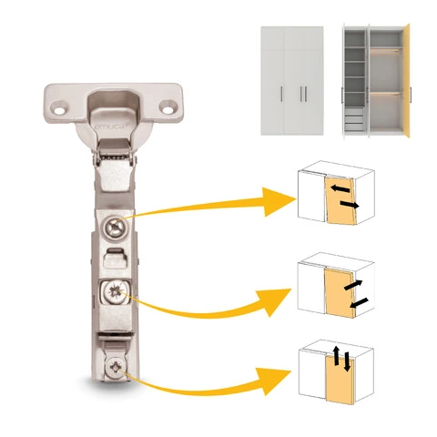 Le cerniere a scodellino  si caratterizzano per il loro pistone ammortizzato che regola la chiusura soft dell'anta.  Sono disponibili in mezzo collo con apertura dell'anta a 105º.