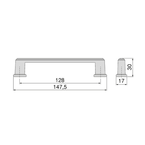 Emuca Lotto di 5 maniglie per mobili Tanger, L147.5mm, interasse 128mm, Zama, Nichel satinato