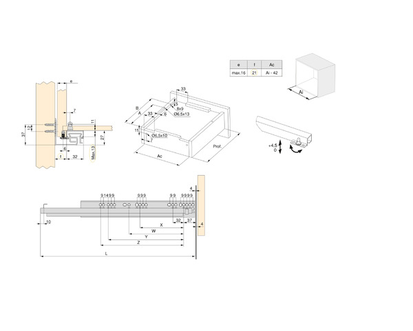 Guide a scomparsa con estrazione totale Silver perfette per mobili di tutta la casa. Queste guide forniscono una estrazione totale del cassetto e dispongono di un sistema push di esplulsione premendo il cassetto. Sono note per il loro funzionamento e perchè dispongono di un perno di blocco montato proprio nella guida per evitare che smonti involtarimento il cassetto. Sono prodotti in acciaio e possiedono uno scivolamento doft e silenzioso grazie ai loro rulli digrande qualità, che permetto la guida in senso orizzontale e verticale.