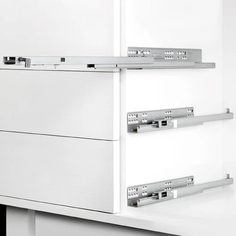 Guide a scomparsa Silver per cassetto ha un'alta qualità e un miglior funzionamento nei mobili per la casa. Queste guide forniscono un'estrazione totale del cassetto. Dispongono di autochiusura e pistone ammortizzatore in entrambe le guide, che forniscono una chiusura soft del cassetto. Inoltre sono note per avere un aggancio per un montaggio facile e uno sm...