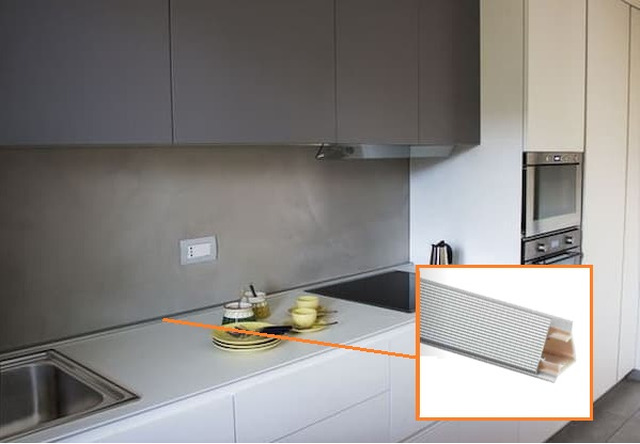 1 PZ - TRIANGOLARE MILLERIGHE IN ALLUMINIO DA 1000 MM/ 3000MM Usata per chiudere il top sulla parete della cucina evitando infiltrazioni.L'alzatina è provvista di un alloggiamento interno utile al passaggio di eventuali cavi elettrici.Base PVC senza piombo con guarnizioni antibatteriche.Profilo di Finitura alluminio anodizzato satinato. MATERIALE: alluminioALTEZZA :            3.5 CMPROFONDITA' :   2.5 CMLUNGHEZZA:     100 CM                              ...