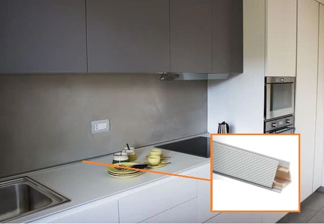 1 PZ - TRIANGOLARE MILLERIGHE IN ALLUMINIO DA 1000 MM/ 3000MM Usata per chiudere il top sulla parete della cucina evitando infiltrazioni.L'alzatina è provvista di un alloggiamento interno utile al passaggio di eventuali cavi elettrici.Base PVC senza piombo con guarnizioni antibatteriche.Profilo di Finitura alluminio anodizzato satinato. MATERIALE: alluminioALTEZZA :            3.5 CMPROFONDITA' :   2.5 CMLUNGHEZZA:     100 CM                                 300 CMMANUTENZIONE:UsataDeve essere utilizzata con la stessa cura dedicata alle altre comuni superfici degli arredamenti da interni. Utilizzare un detergente nonabrasivo per la pulizia di tutte le superfici lavabili della casa. Non possono essere assolutamente sostanze abrasive o graffianti, detergenti, decalcificanti, pulitori per scarichi,pulitori per scarichi contenenti acidi o sali.