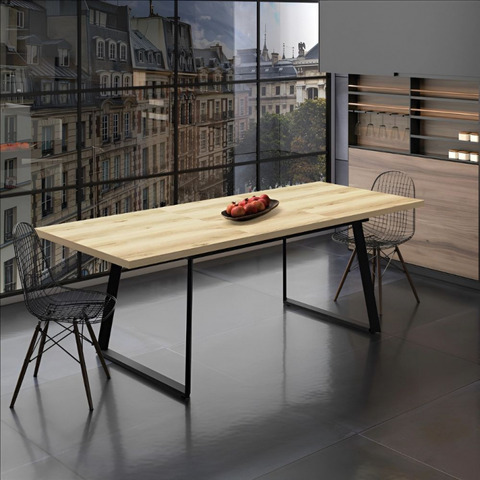 Tavolo allungabile Lavinya piano rovere e gambe in metallo nero