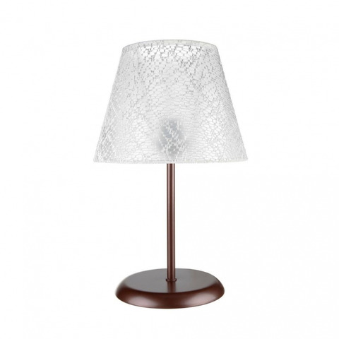 Lampada da tavolo Elva in metallo e paralume tessuto ricamoLampada da tavolo in metallo e paralume tessuto ricamo Elva MNG3065 Caratteristiche: Struttura in metallo. Paralume in tessuto con ricamo. Colore base caff�. Colore paralume bianco. Altezza 39 cm. Larghezza paralume 25 cm. Larghezza base 16,5 cm. Attacco lampadina 1 x E27 max 60 WATT. TEMPI DI CONSEGNA: 7/10 GIORNI