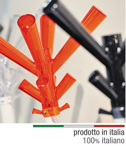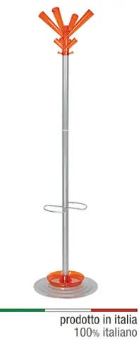 APPENDIABITI  JOYAppendiabito in metallo con componenti in plastica ideale per casa, uffici e attività commerciali.Struttura:  tubolare tondo verniciato alluminioComponenti: policarbonatoColore: arancio, trasparente, fumèImballo: scatola 1 pz mis. 61x54x10