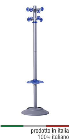 APPENDIABITI  MIXAppendiabito in metallo con componenti in plastica ideale per casa, uffici e attività commerciali.Struttura:  tubolare tondo verniciato alluminioComponenti: plasticaColore: blu, arancio, verdeImballo: scatola 1 pz mis. 55x45x13