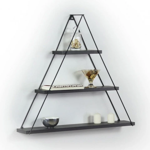 Mensola triangolare Moset 3 ripiani nero MT191005Mensola triangolare 3 ripiani Moset nero Mensola triangolare con tre ripiani con fissaggio a parete. Dettagli semplici ma eleganti, garantiranno la giusta sistemazione dei tuoi libri, vasi, piante e tutti gli oggetti che desideri. La puoi montare in cucina, in bagno, in soggiorno, la Moset si integrer� facilmente ad ogni ambiente. Caratteristiche: Materiale acciaio e truciolare ricoperto in melaminico Peso massimo supportato 8 kg. Peso 2,6 kg. Dimensioni 74x13x61h cm. Prodotto fornito smontato. TEMPI DI CONSEGNA: 7/10 GIORNI