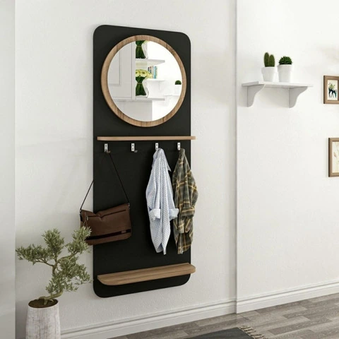 Mobile ingresso Slimingresso nero con specchio e appendiabiti