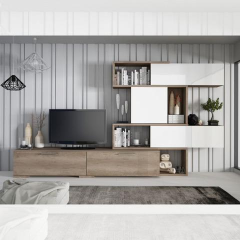 CODICE ARTICOLO: ITALFROM_10002209 Parete attrezzata 8016 reversibile struttura rovere e frontali bianchiParete attrezzata 8016 reversibile struttura rovere e frontali bianchi Caratteristiche: Reversibile Parete attrezzata lineare o angolare Struttura colore rovere Frontali colore bianco 4 nicchie a giorno 3 ante ad apertura push pull Base con 2 ante a ribalta Maniglia in ABS  Può sostenere una TV fino a 55 pollici. Include il passacavo in plastica per mantenere i cavi in ordine Materiale in truciolare alta qualità Rivestimento melaminico Bordi in PVC Misure : H187,5 X 48,7 X 293/380 CM. TEMPI DI CONSEGNA: 6/7 GIORNI