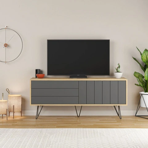 Porta tv Picadilly con struttura rovere e 2 ante a ribalta antracite