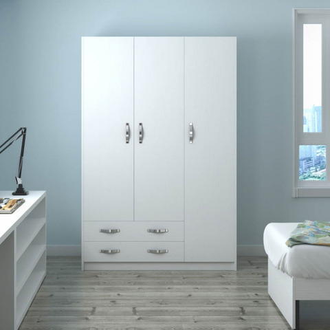 Armadio 210 tre ante e due cassetti bianco frassinato