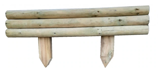 Bordura Steccato Rigida Orizzontale per Aiuole Giardino in Legno di Pino- cm ø 6 x L95 XH18/35