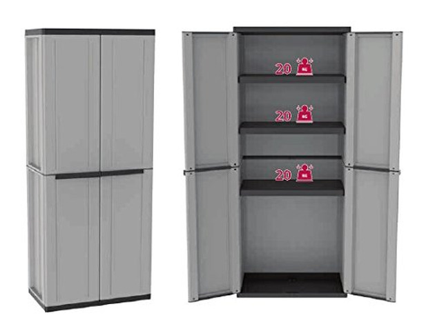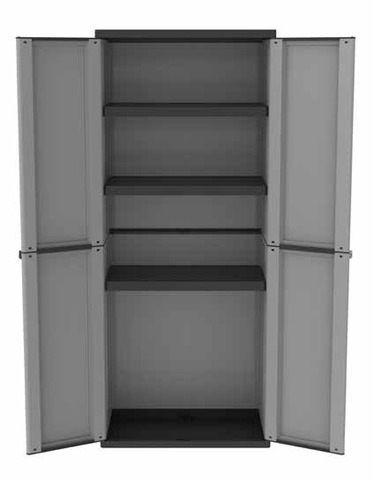 ARMADIO A 2 CON 3&spin;RIPIANI REGOLABILI CM.68x37,5x163,5H Armadio in resina antiurto. Apertura delle porte a 180°. Predisposizione per lucchetto. Dimensioni cm 68x37,5x163,5HDimensioni imballo: 80x41x36 cm