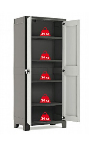 ARMADIO ALTO 4 RIPIANI REGOLABILI 80x44x182h MODELLO NATITGli armadi da esterno sono utilissimi complementi di arredo da giardino realizzati per allestire lo spazio con ordine e praticità.I nostri armadietti sono realizzati in poliuretano , materiale scelto per resistere all'usura del tempo e alle intemperie. I 4 ripiani regolabili , con portata massima di 30 kg forniscono la flessibilità di cui si ha bisogno per conservare al meglio gli oggetti.Presenta la chiusura lucchettabile. I piedini rialzati permettono una facile e pratica pulizia dei pavimenti.Dimensioni Armadio : 80x 44 x 182 h Dimensioni Imballo : 26 x 85 x 46L'armadietto è disponibile nella colorazione unica Grigio e Nero